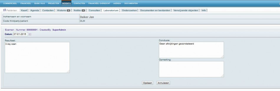 - Patiënten beheer en alles wat hiermee te maken heeft zoals: