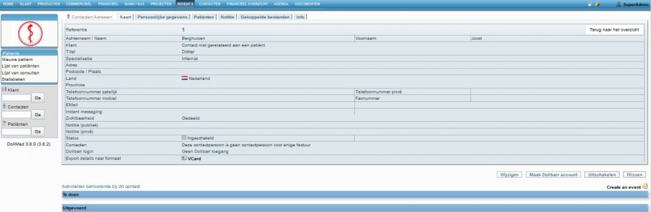 DoliMed is een gespecialiseerde variant van het pakket Dolibarr ERP & CRM, dat verrijkt is met de module DoliMed. Dit om tegemoet te komen aan de specifieke eisen en wensen van professionals die werkzaam zijn in de gezondheidszorg. Het is een praktische oplossing die het mogelijk maakt om op voordelige wijze een complete patiëntenadministratie te voeren.